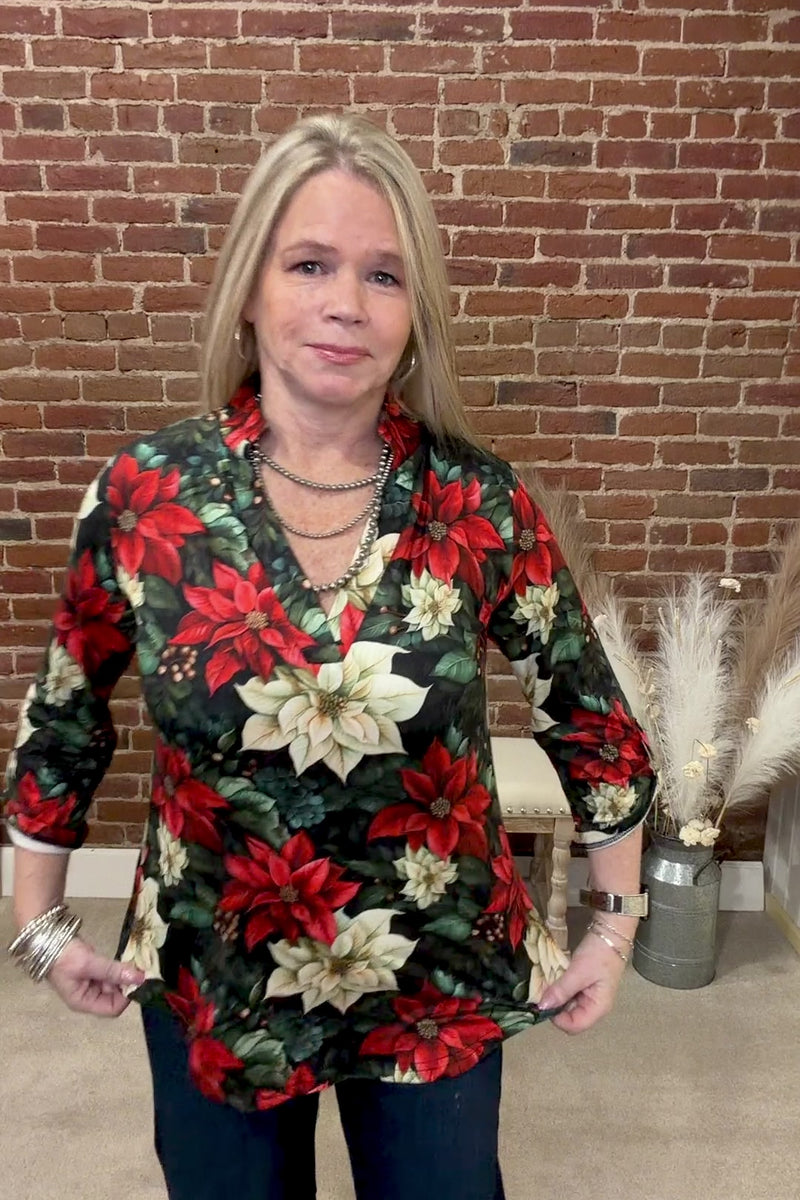 Celebrate the festive season in style with the Poinsettia Season Top. Featuring a vibrant poinsettia pattern, this top adds a cheerful, holiday touch to your wardrobe. Its comfortable fit and eye-catching design make it perfect for gatherings or festive outings, helping you stand out with seasonal charm. Brighten your look effortlessly with this must-have seasonal essential.